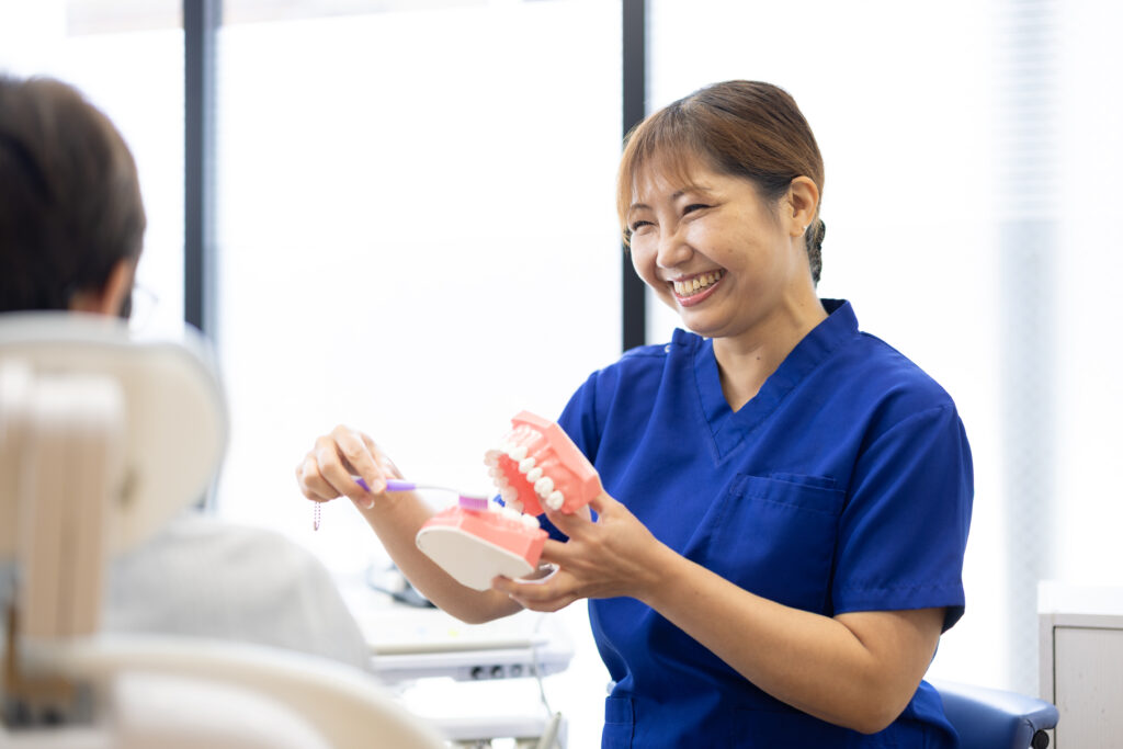 研究では重度の歯周病と早産や低体重児出産との関連が報告されていますが、因果関係については現在も検討が続いています。それでも、炎症を放置しないことが安全につながるという点は共通認識です。妊娠中の歯科検診では歯ぐきの状態、出血の有無、歯石の付着状況などを確認し、必要に応じてクリーニングを行います。痛みを伴わない範囲での処置が基本となるため、妊娠中でも安心して受診できる体制が整えられています。